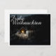 Die Karte zeigt eine eindrucksvolle, winterliche Szenerie mit einer kleinen, eucht eten Holzhütte inmitten eines verschneiten Waldes. Die warme Lichtquelle im Inneren einen schönen Kontrast zur Dunklen, friedlichen Umgebung. Der elegante "Frohe Weihnachten"-Schriftzug in Weiß, dem Motiv eine festliche Note. 🎄 ✨ English