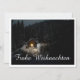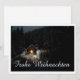 Die Karte zeigt eine eindrucksvolle, winterliche Szenerie mit einer kleinen, eucht eten Holzhütte inmitten eines verschneiten Waldes. Die warme Lichtquelle im Inneren einen schönen Kontrast zur Dunklen, friedlichen Umgebung. Der elegante "Frohe Weihnachten"-Schriftzug in Weiß, dem Motiv eine festliche Note. 🎄 ✨ English