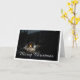 Die Karte zeigt eine stimmungsvolle, winterliche Szene mit einer kleinen, beleuchteten Holzhütte inmitten eines schneebedeckten Waldes. Die warme Lichtquelle im Inneren schafft einen schönen Kontrast zur dunklen, friedlichen Umgebung. Die elegante weiße "Frohe Weihnachten" verleiht dem Motiv eine festliche Touch. 🎄 ✨