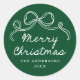 Verleihen Sie Ihren Geschenken und Briefen einen festlichen Look mit diesen handgezeichneten Weihnachtsaufklebern, die eine weiße Schleife und „Frohe Weihnachten“ in einer handgeschriebenen weißen Schrift auf grünem Hintergrund zeigen. Personalisieren Sie mit Ihrem Namen und dem Jahr für ein charmantes individuelles Detail. Perfekt zum Einpacken von Geschenken, zum Verschließen von Weihnachtskarten oder Party-Einladungen und zum Dekorieren von saisonalen Geschenken.