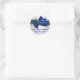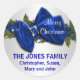 Ein wunderschöner, runder Aufkleber mit einem Kobalt- und Marinebald-blauen IMITAT, das auf einem Weihnachtskranz mit Schneebeeren und grünen Blätter ruht, der die Worte, Frohe Weihnachten und eine Vorlage für Ihren Familiennamen enthält, welcher Pop vor einem lebendigen silbergrauen Hintergrund. IDEAL FÜR - Dekorieren Sie Ihre Papierprodukte und präsentiert diese Weihnachtszeit.