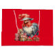 Weihnachtshähnchen in Brillen/Hat & Presents Red Große Geschenktüte