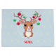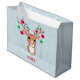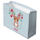 Weihnachtshirsche auf hellblauem Hintergrund mit Schneeflocken-Geschenktasche. Text kann angepasst werden.