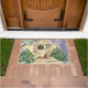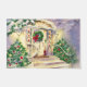 Ein schönes Vintages Landhaus mit Christmassy-Dekoration in einer Winterlandschaft. Zwei Weihnachtsbäume stehen neben dem Hauseingang, in jedem Fenster zündete eine Kerze an und an der Tür hängt ein Weihnachtskranz. Passen Sie an, um das Geschenkprodukt personalisiert zu machen!