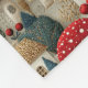Sehr hübsche Fleecedecke mit dem Bild eines Landdorfes von Häusern mit roten Dächern, roten Pilzen und hübschen Kiefernbäumen, in einem Nadelspitze-Effekt.