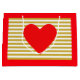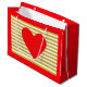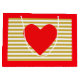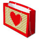 Rotes Weihnachtsherz auf goldgelb und weiß gestreiftem Hintergrund Geschenktasche. Text kann angepasst werden.