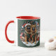 Niedliche Darstellung der zu Weihnachten verkleideten deutschen Schäferhunde. Ideal für Hundeliebhaber oder Hundeeltern während der Ferienzeit.