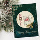 Weihnachtshörnchen und Schneeflocken auf grünem Hintergrund machen aus diesem Haus eine perfekte Weihnachts- oder Urlaubskarte für Freunde und Familie.