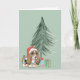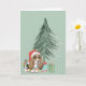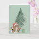 Niedlicher Beagle in Urlaubsleuchten mit Bonbonbonbons, Geschenken und einer Weihnachtsmannmütze auf grünem Hintergrund. Die Hintergrundfarbe kann geändert werden.