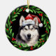 Weihnachtshund Siberischer Husky Weihnachtsmannmüt Keramik Ornament