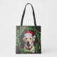 Weihnachtsgeschenk Tasche mit Aquarell Labrador Retriever und Aquarell Weihnachtskranz Design. Fügen Sie dem Design den Hundenamen hinzu und es ist die perfekte Geschenkidee für den Labrador Liebhaber, den Sie kennen, oder Sie selbst!