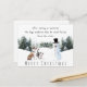 Eine niedliche und lustige Weihnachtspostkarte. Auf weißem Hintergrund liest sich der Text After so geduldig, die Hunde fragten sich, wann er endlich die Sticks werfen würde, gefolgt von frohen Weihnachten. Zwei verwirrte Boxerhunde sehen sehnsüchtig einen Schneemann an, der ihm gewartet wurde zu spielen.