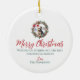 Niedliche Weihnachtsschmuck mit einem süßen Yorkshire Terrier Yorkie Hundewelpen in einer Weihnachtsmannmütze in Weihnachten heilig und Beerenkreu. Personalisierter Hund, Welpe, Weihnachtsschmuck im süße Tier (Text auf der Rückseite).