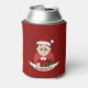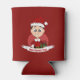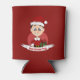 Kann cooler mit einer Illustration eines niedlich lächelnden, glücklichen schwarzhaarigen Jungen, trägt er ein rot-weißes Weihnachtskostüm und hält ein Geschenk; mit bearbeitbarer Textvorlage für Ihren Namen oder Ihre Nachricht, Weihnachtsfeiertagsgestaltung mit rotem Hintergrund