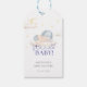 Das "Santa Baby" Duschgeschenk-Tag hat ein süßes, festliches Design, mit einem Baby in einer blauen Weihnachtsmannmütze mit weichen Wolken und Sternen. Es verwendet spielerische Rote Schrift- und Pastelltöne und schafft so ein gemütliches Urlaubsatmotiv, das perfekt für eine Babydusche im Winter geeignet ist.