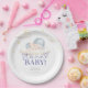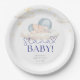 Die Teller des "Santa Baby"-Duschpapiers haben ein festliches, süßes Design, mit einem kleinen Kind in blauer Weihnachtsmannmütze mit weichen Wolken und Sternen. Es verwendet spielerische Rote Schrift- und Pastelltöne und schafft so ein gemütliches Urlaubsatmotiv, das perfekt für eine Babydusche im Winter geeignet ist.