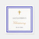 Für eine elegante Taufe, ein Baby zu feiern. Ein schick weißer Hintergrund. Die Einrichtung ist mit königsblauen Rahmen und einem goldenen Imitat-Kreuz gestaltet. Personalisieren und fügen Sie einen Namen und ein Datum hinzu. Schwarze und goldene Buchstaben.