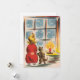 Weihnachts-Weihnachtsjunge und Katze Aussehen Fenster Weihnachtskarte.