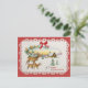Mit dieser bezaubernden Weihnachtspostkarte im Vintagen Stil senden Sie uns herzliche Urlaubswünsche. Dieses nostalgische Design mit einer schneebedeckten Hüttenszene, gerahmt mit Spitzen-Details, einem roten Bogen und einer Hirschfamilie, erweckt den Zauber einer gemütlichen Wintersaison. Ideal, um Freunden und Familie feierlichen Beifall zu schenken oder für Sammler der Retro-Urlaubskunst.