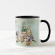 Rustikale Winterszene mit einer Gnome, die Kaffee trinkt und bequem auf einem karierten schwarz-weißen Schachbrett sitzt. Umgeben von bepflanzten Weihnachtsbäumen, Laternen mit Kerzenlicht, Feuerzangen und Strümpfen, die von einem Zweig hängen, können Sie Ihre persönlichen Grüße hinzufügen oder personalisieren Sie es mit einem Namen, um Mitarbeiter und Familie zu lassen wissen, woher die niedliche Tasse mit den warmen Wünschen Schriften kommt.