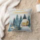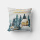 Weihnachtsszene mit Blockhütte und Rentier im Aquarelldesign.