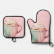 Weihnachtskakao Gold Rosa Minze Warme Wünsche Ofenhandschuh & Topflappen-Set