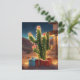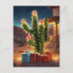 Weihnachtskaktus mit Geschenken vor einem Haus Postkarte