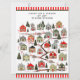 Kreative Weihnachtsgrüßkarte mit einer Countdown-Aktivität im Urlaub mit einem niedlichen Winterdorf mit 24 Miniaturhäusern, die zu einem Lebkuchenhaus führen.