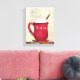 © Courtney Prahl / Wilder Apple. Das Bild zeigt eine rote Weihnachtstasse mit weißen Weihnachtsbäumen, die darauf gemalt wurden. Auf der Tasse ist auch weißer Schaum.