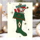 Weihnachtskatze im Strumpf Weihnachtskarte. Dieses Design zeichnet sich durch ein Vintages Katzendesign innerhalb eines Strumpfs aus. Was für eine schöne Retro-Urlaubsszene! Personalisieren Sie dieses maßgeschneiderte Design mit Ihrem eigenen Gruß.
