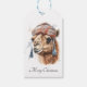 Aquarellmalerei auf einem Kamel mit einem Strick aus rosa Wolle im Weihnachtsstil