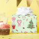 Dieses niedliche Verpackungspapier ist vielseitig und kann für Geschenke oder Kunst- und Handwerksprojekte verwendet werden. Das Design umfasst Weihnachtsbäume, Süßspeisen, Süßigkeiten und Kuchen auf grünem Hintergrund.