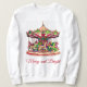 Sweatshirt in einem Weihnachtsfeiertag Thema Karussell in Pfefferminzstreifen von Rosa und Weiß, mit Grün, und die Beschriftung "Merry and Bright"
