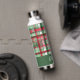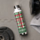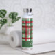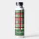 Moderne Weihnachtsflasche mit kariertem Wasser mit individuellem Namen für alle Familienmitglieder in dieser Urlaubssaison. Die tiefen Grüntöne und die roten Farbtöne machen den Tag gemütlich und gemütlich.