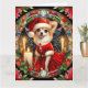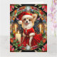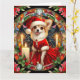 Weihnachtskarte mit dem Bild eines niedlichen Chihuahua, das ein Weihnachtskleid trägt. Bilder können durch eigene Fotos ersetzt werden. Text kann auch bearbeitet werden.
