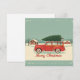 Schicken Sie eine herzliche Dosis Weihnachten Urlaub Nostalgie mit dieser Retro Weihnachtskarte. Das Design vereint die Wärme der Erinnerungen, die in einem Vintagen, roten Wagen mit einem Weihnachtsbaum gepflegt sind und durch ein schneebedecktes, modernes Viertel der Mitte des Jahrhunderts fahren. Die gedämpften Farben Rot, Waldgrün, Creme und Hellblau verleihen dem Ganzen ein gemütliches, zeitloses Ambiente, während die abgenutzten Kanten und der strukturierte Papiereffekt den Vintagen Charme verleihen. Diese Karte zu erhalten, fühlt sich an, als würde man sich in einen klassischen Urlaubsfilm begeben - ein perfekter Weg, um Freude und Erinnerungen zu teilen.