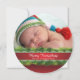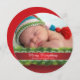 Moderne, die runde kreisförmige Weihnachtsfotokarte mit grünen Kiefernästen mit Spitzen und rotem Band.