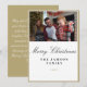 Mit dieser zeitlosen und eleganten Weihnachtskarte senden Sie Ihren Urlaubswünsche ein. Mit einem minimalistischen Design und einer luxuriösen Goldgrenze ist diese Karte der ideale Rahmen für Ihr Foto. Dieses klassische Design, das mit Ihrem Familiennamen und dem Jahr abgestimmt ist, eignet sich ideal, um Freude und Liebe während der Festsaison zu vermitteln.