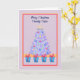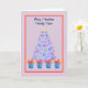 Weihnachtskarte für Ihre Studentinnenverbindung Schwester mit einem hübschen blauen Weihnachtsbaum mit Geschenken auf rosa Hintergrund. Dank der Hungryjpeg für einige Elemente in der Gestaltung.
