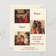 Weihnachtskarte mit drei Bildern und „Frieden, Liebe und genug Familientrara, um die Dinge interessant zu halten“ auf der Vorderseite.