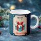 Weihnachtskarte mit festlicher Geschenkboxen Kaffeetasse