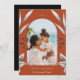 Moderne monochrome Aquarellbogen-Foto-Rahmen, Familienkarte in festlicher Terrakotta Orange und Schwarz.