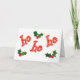 Eine Weihnachtskarte mit "ho ho ho ho" in roten und goldenen Buchstaben und heilig, aus einem handgemalten Papier Collage Design von Judy Adamson. Dieses Design ist auch auf Geschenke und Bekleidung erhältlich.