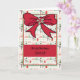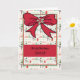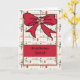 Weihnachtskarte für Kinder mit kleinen Elfen, einem großen roten Bogen und rot-grünen Rändern. Dank Creative Fabrica für einige der Elemente in der Gestaltung.
