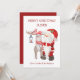 Weihnachtskarte vom Weihnachtsmann - personalisiert mit dem Namen Ihres Kindes. Der gesamte Wortlaut ist editierbar und lautet derzeit "fröhliche Weihnachten [Name] .. Liebe Santa und seine Helfer". Die Aquarellgestaltung umfasst Santa, Rentier und Kardinal.