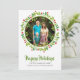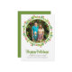 Stilvolle, weiße, kundenspezifische Weihnachtskarte im Stil eines Fotos, mit einem grünen grünen Blattkranz mit roten Beeren und eigenem Foto-Slot im Inneren. Personalisieren Sie den individuellen Text und das Bild, um Ihren Urlaubsbedürfnissen .