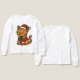 Kuscheliges orangefarbenes Kätzchen in Santa-Hut und grüner Schleife; warme Festtagsstimmung, kindgerechtes Design, ideal für weihnachtliche Oberteile und Accessoires.