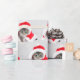 Weihnachtskätzchen in Hut auf Grau Geschenkpapier