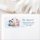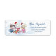 Niedliche Santa Kätzchen, schneebedeckter Kiefernbaum und präsentiert Weihnachtsanschrift-Label.
