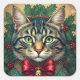 Weihnachtskatze 2024 quadratischer aufkleber